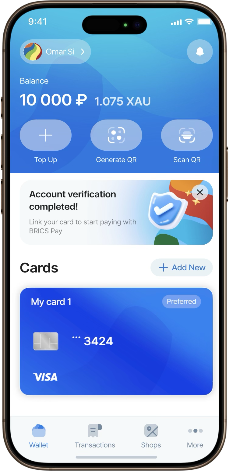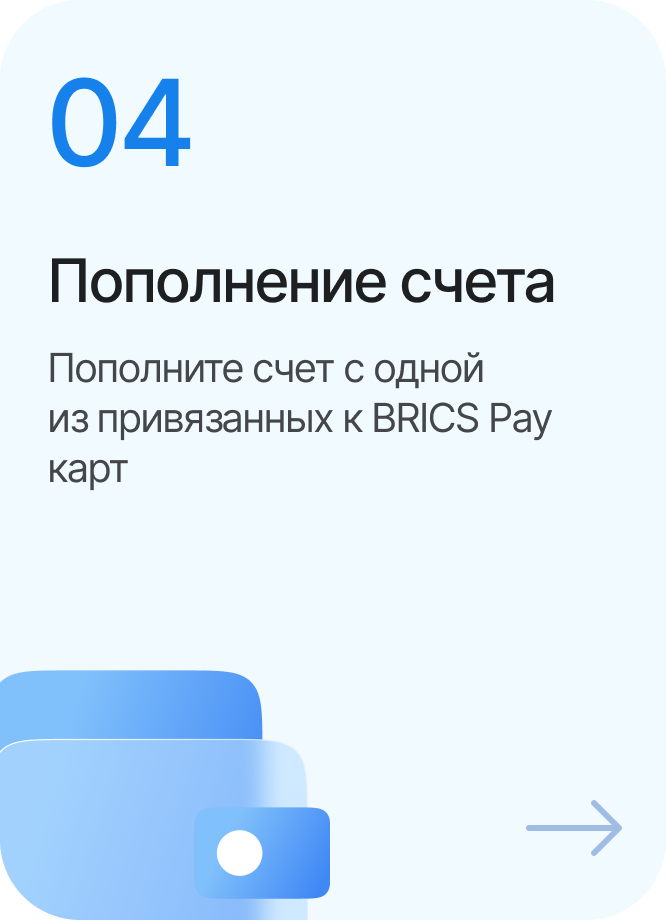 BRICS Pay позволяет иностранным туристам и бизнесменам легко и безопасно оплачивать товары и услуги в России — без необходимости открывать местный банковский счёт или конвертировать валюту. Достаточно привязать свою международную карту Visa (Mastercard появится скоро) к приложению BRICS Pay, пополнить кошелек BRICS Pay и использовать приложение для оплаты по QR-коду.
